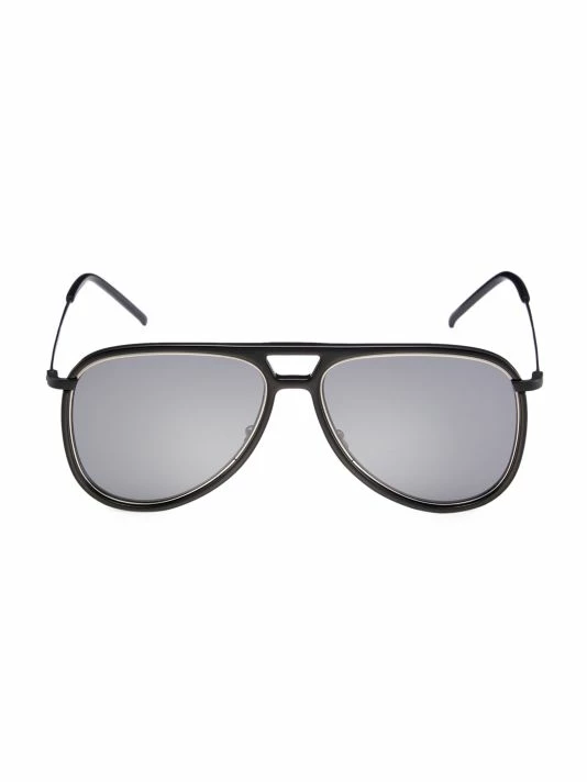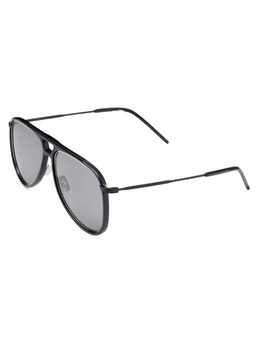 From the New Wave Collection. Pilot shape sunglasses with plastic rims highlighted by thin metal wires.