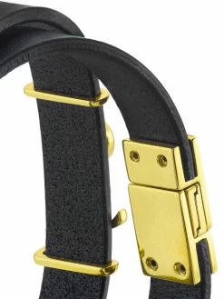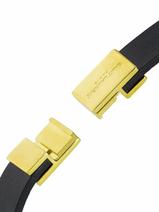 Styled with signature YSL logo hardware, Saint Laurent’s Opyum wrap bracelet is crafted of smooth calfskin leather in Italy.