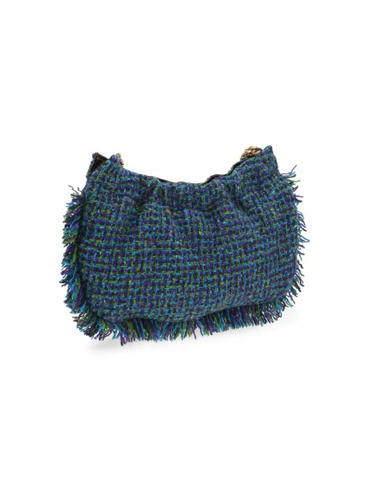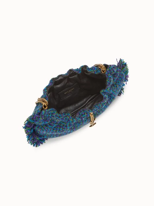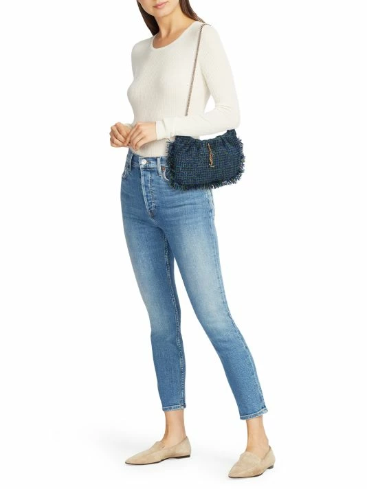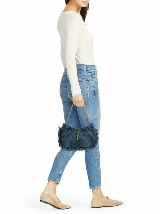 Timeless tweed with a wispy frayed trim defines this chic hobo bag, highlighted with polished YSL logo hardware and chain-link straps.