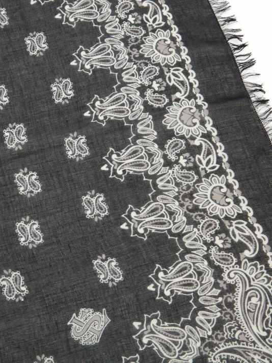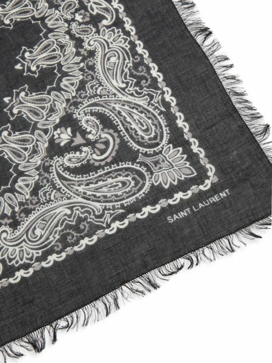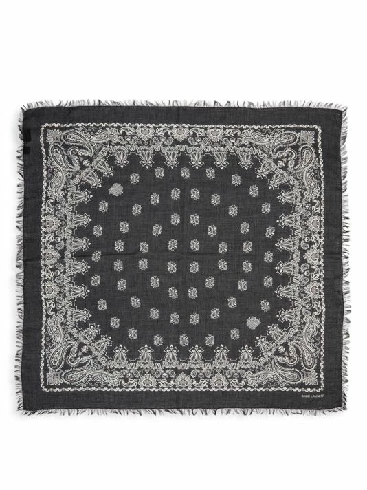 Detailed with frayed edges, Yves Saint Laurent’s bandana features a whimsical paisley print.