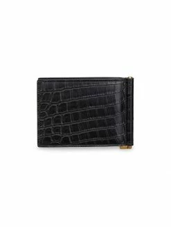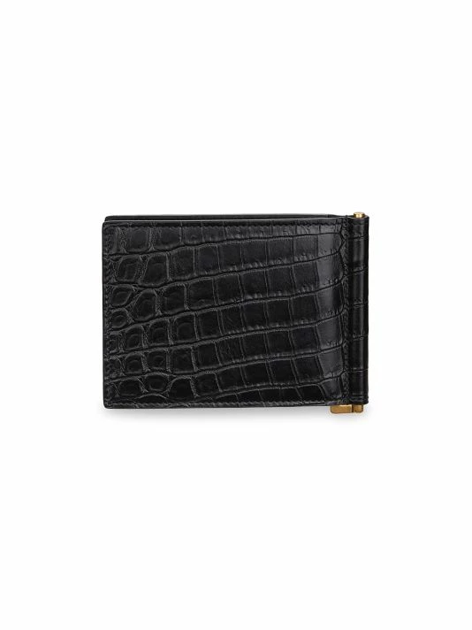 Made in Italy, YSL’s bi-fold wallet showcases a croc-embossed design.