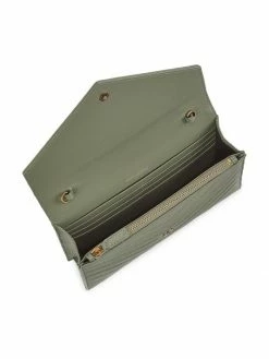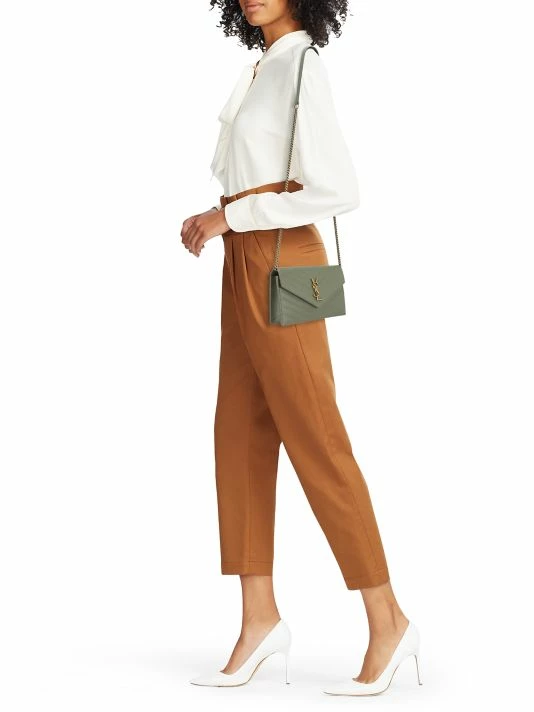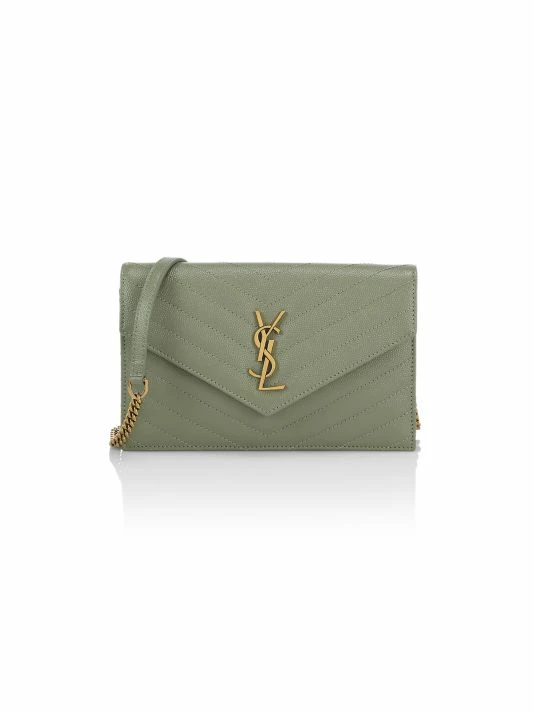 Saint Laurent’s chain wallet is crafted of quilted calfskin with a signature monogram plaque.