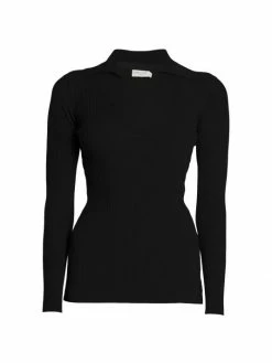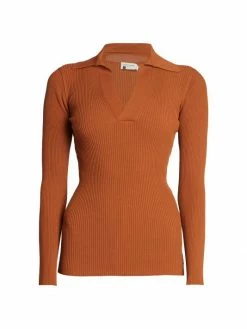 This charming collared sweater from Saint Laurent is crafted of a sleek silk blend, finished in a sporty rib-knit.