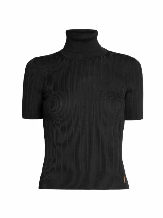 This modern silk top from Saint Laurent features a chic turtleneck, finished in a streamlined rib-knit.