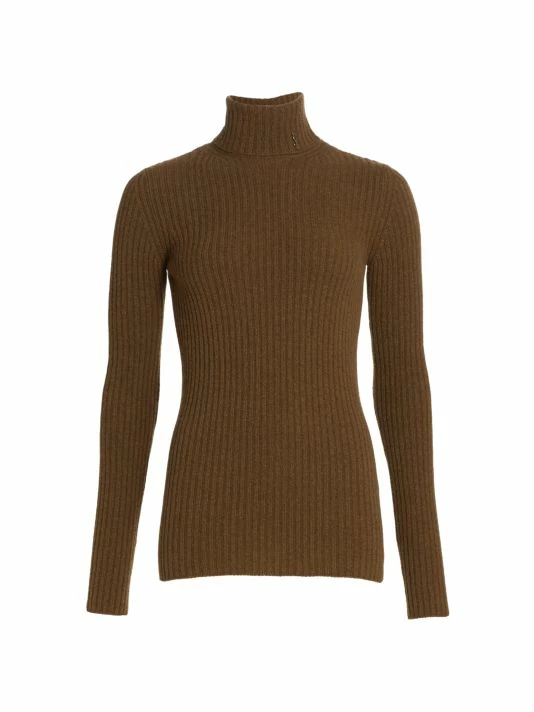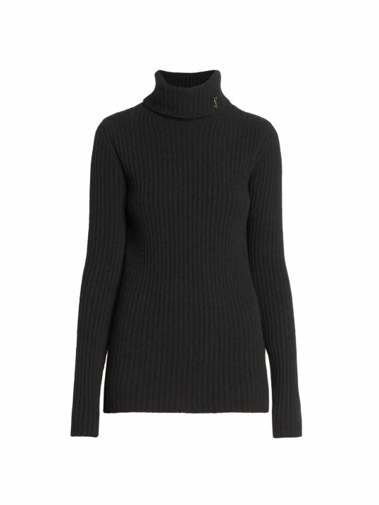 This luxe virgin wool sweater is knit in a curve-hugging slim silhouette and topped with foldover neckline embellished with saint laurent’s iconic monogram insignia.
