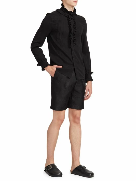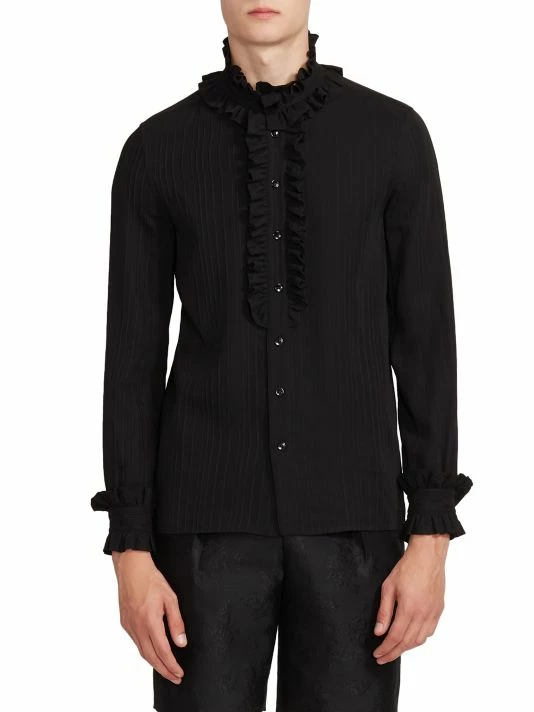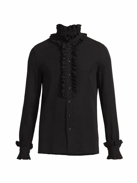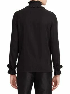 Pleating and ruffles impart an evening-ready sensibility to this silk button-up shirt.
