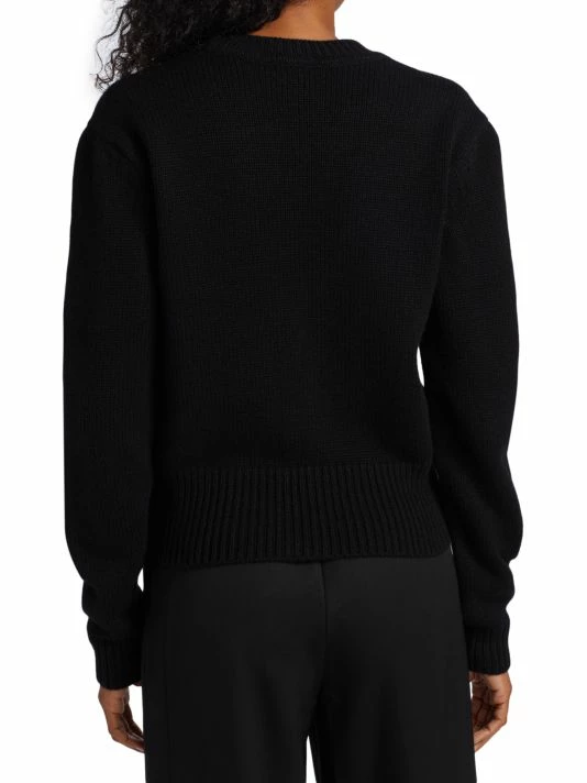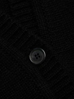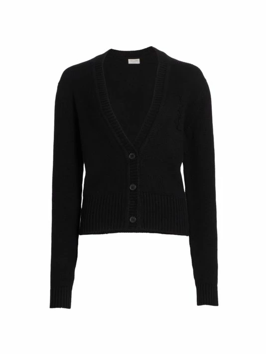 Cozy cashmere cardigan with tonal stitched sequin logo at chest.