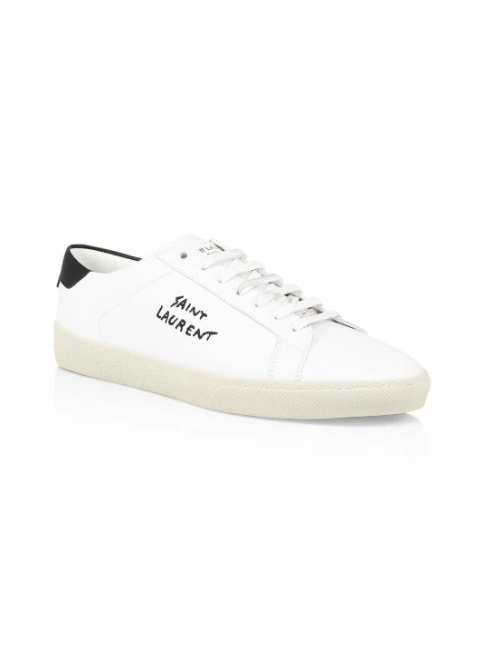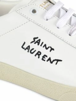 Low-top sneakers with embroidered logo detail at the side and pre-distressed laces.