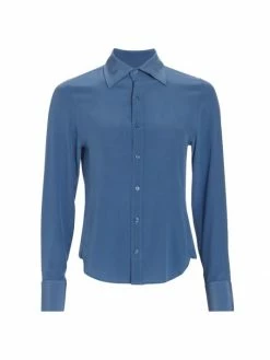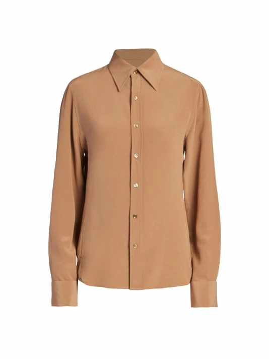 This silk point collar shirt features French cuffs with goldtone hardware.