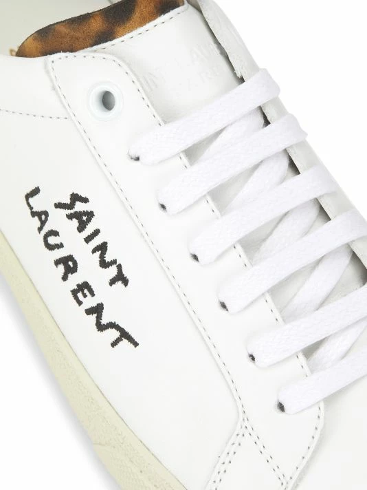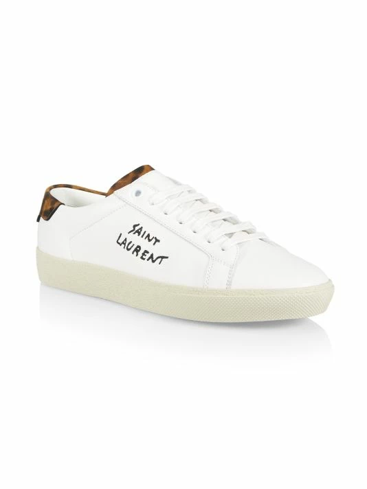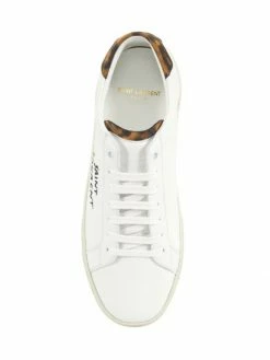 Signature leather sneakers decorated with leopard print heel tab and tongue, finished with embroidered logo at side wall.