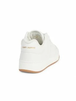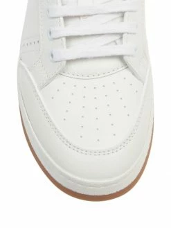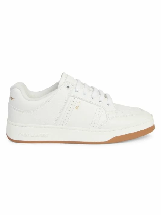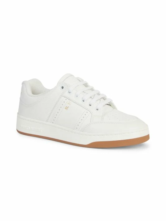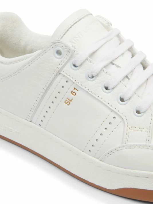 Low-top laced sneakers featuring perforated leather on the front panel, a goldtone Saint Laurent signature across the pull tab, and SL 61 inscription on the side.