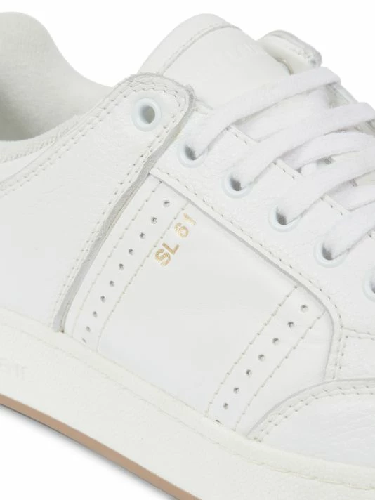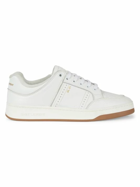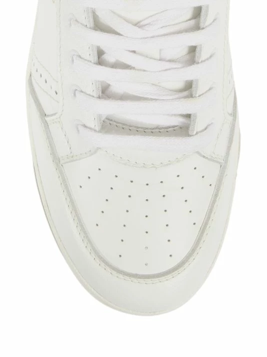 Saint Laurent introduced its famous Le Smoking tuxedo in 1966, a rendition of the classic men’s smoking suit made for women. Inspired by the iconic silhouette and 1970s women’s archival pieces, Creative Director Anthony Vaccarello reinterprets these styles for menswear with slinky, billowing shapes, delicate textures, and intricate patterns. The result is a unique, androgynous look that celebrates fluidity as a cornerstone of contemporary fashion. These sneakers are crafted of smooth and pebbled leather, finished with a metallic foil printed logo.