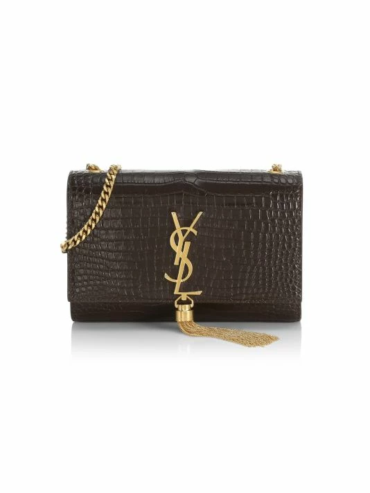 Decorated with YSL initials hardware and chain tassel, this iconic shoulder bag is rendered in crocodile embossed leather.