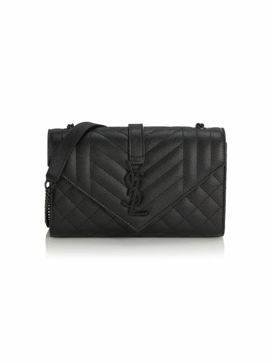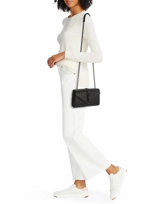 Made in Italy of finely grained leather, Saint Laurent’s satchel boasts a mixture of vertical, chevron, and carré quilted stitching. This piece is highlighted with tonal YSL logo hardware.