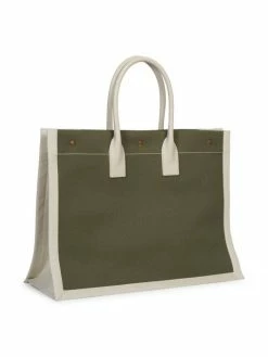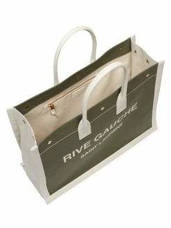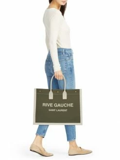 Saint Laurent’s Rive Gauche tote is skillfully crafted in Italy of durable canvas with a spacious interior. Adorned with leather tubular straps, this easily recognizable piece is defined with bold logo text at the front.