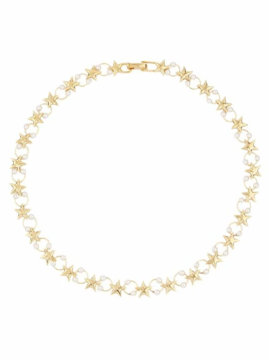 Polished stars and glass pearls are linked together by hoops on this statement necklace, finished with a logo-engraved clasp closure.