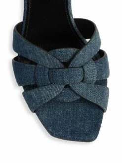 Dark denim updates these signature woven heeled sandals, designed with a chic open square toe.