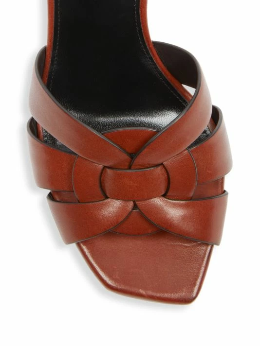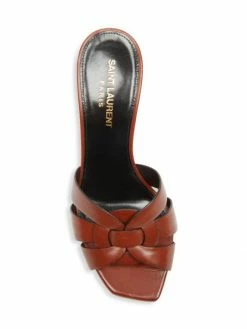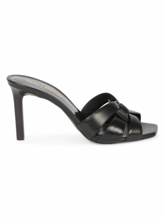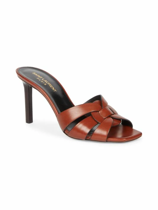 Saint Laurent’s signature interwoven straps lend an artisanal aesthetic to these leather mules.