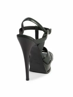 Woven leather tops these signature platform sandals, designed with an exaggerated stiletto heel.