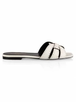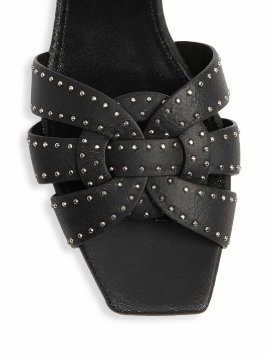 Tiny silver studs embellish these signature woven leather flats, designed with a chic open square toe.