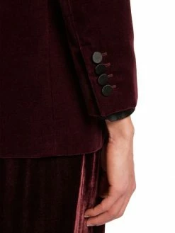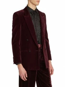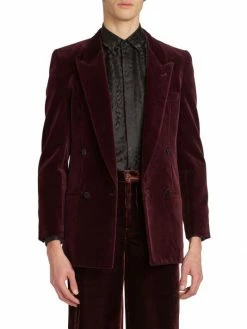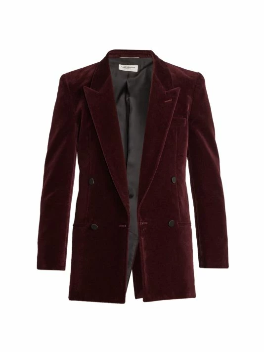 Crafted of cotton, Saint Laurent’s blazer features a double-breasted silhouette and sports peak lapels.