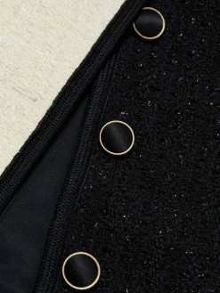 Accented with contrast buttons, this jacket is composed of two-tone cotton-blend tweed.