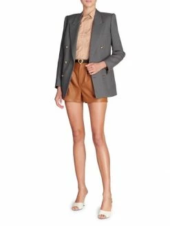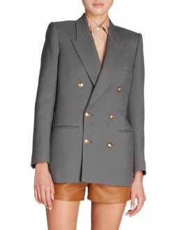 Polished goldtone buttons accent this timelessly tailored jacket in a double breasted fashion creating a structured silhouette that will become a staple wardrobe piece.