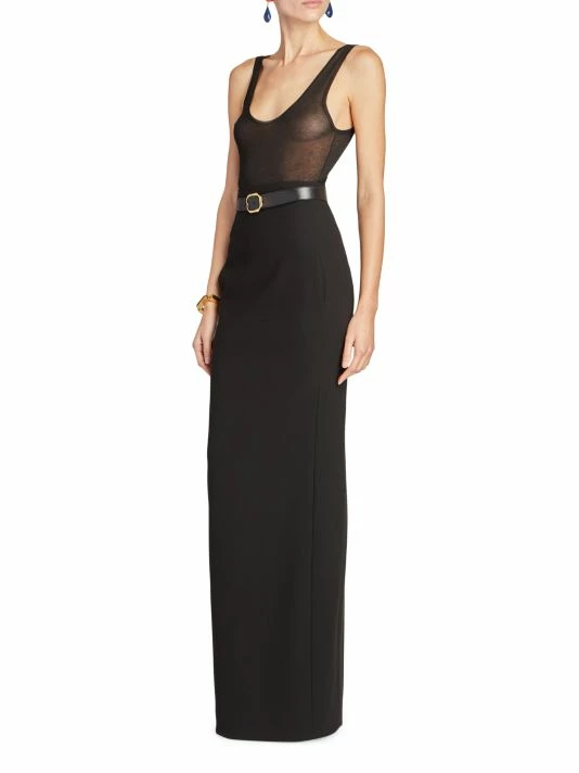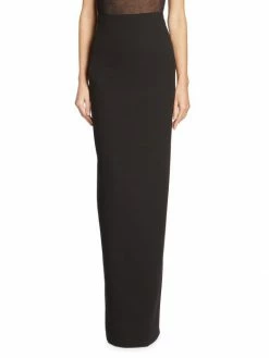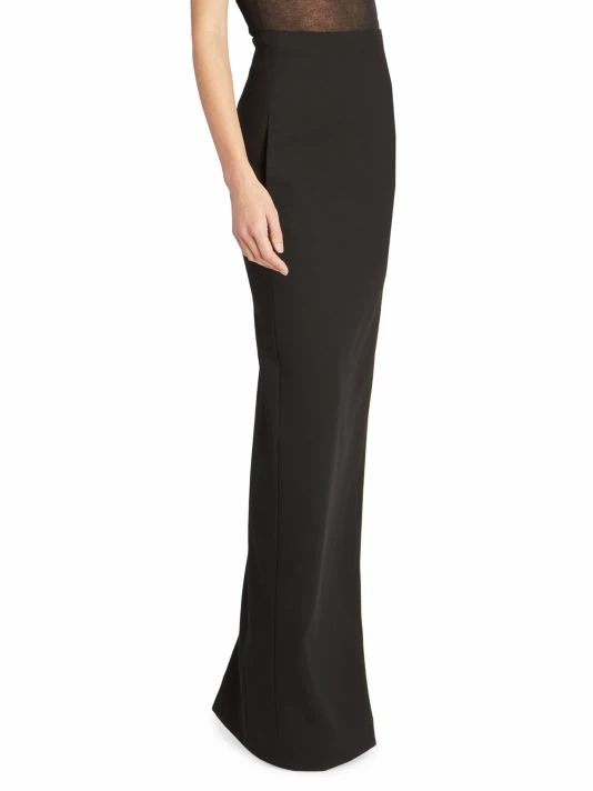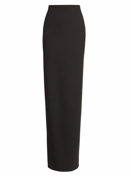 This chic maxi-skirt slims the figure with an elongated silhouette, cut with a back slit for ease of movement.