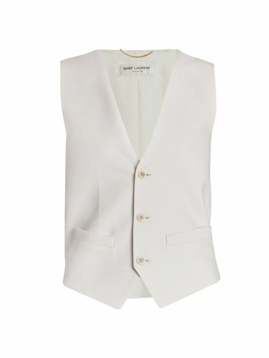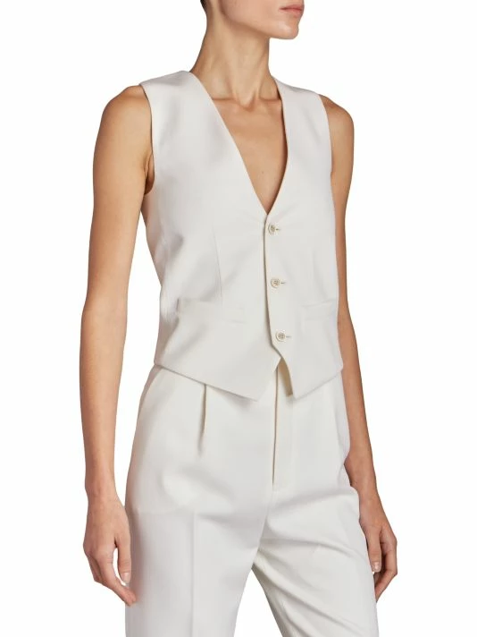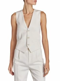 This fitted vest features flat front seams invoking a chic style, boasting welt pockets and tonal buttons.