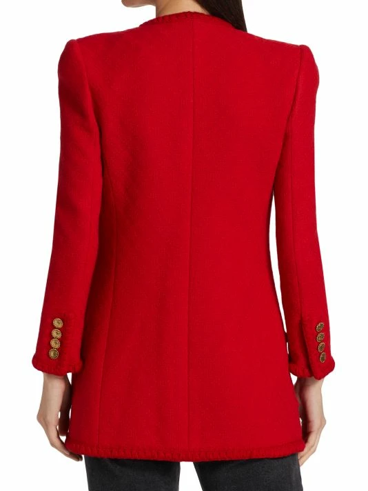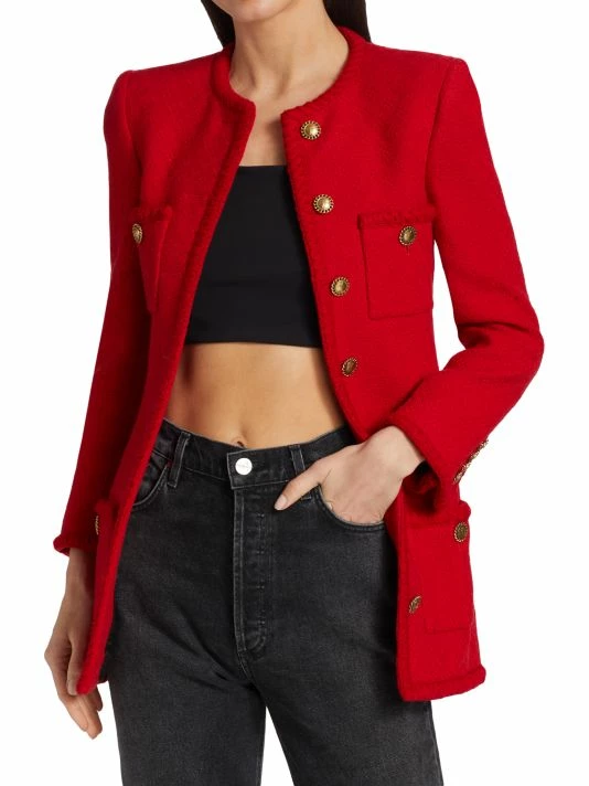 Designed with a timeless look, this wool tweed jacket is tailored to a refined silhouette that hits below the hip.