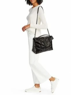 Dressed in Saint Laurent’s monogram coated canvas, this Italian-made bag is finished with the heat-stamped logo at rich leather trim.