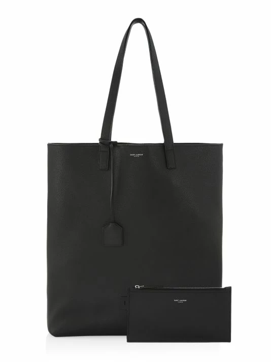 Crafted of full-grain leather, this shopping bag is adorned with a leather tag and is printed with the Saint Laurent logo at the front.